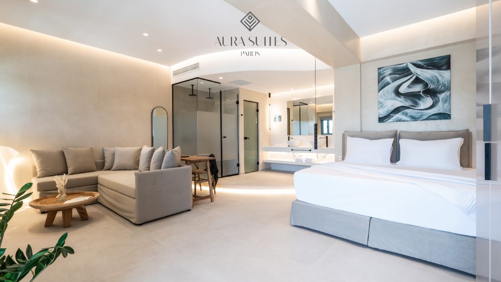 Οι πολυτελείς σουίτες του AURA SUITES PAROS, μέλος της YESTAY Hotels, ταξιδεύουν τον επισκέπτη σε μία μοναδική εμπειρία αψεγάδιαστης διαμονής. Τα μελτέμια και η μορφολογία του κυκλαδίτικου τοπίου στέκονται πηγή έμπνευσης του αρχιτεκτονικού σχεδιασμού και της διακόσμησης. Η ειδυλλιακή του τοποθεσία, οι ιδιωτικές πισίνες με θέα το απέραντο γαλάζιο της Νάουσας, τα γευστικά πρωινά, το άρτια εκπαιδευμένο και φιλόξενο προσωπικό και το καλαίσθητο σύγχρονο design δημιουργούν το ιδανικό περιβάλλον για αξέχαστες διακοπές. Η ικανοποίηση των αναγκών του σύγχρονου ταξιδιώτη μπαίνουν στον πυρήνα της ύπαρξης και λειτουργίας του, κατατάσσοντάς το βάση των αξιολογήσεων των επισκεπτών σε έναν από τους καλύτερους προορισμούς.